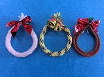 毛糸で組みひものクリスマスリースをつくりました。