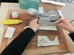 テープカッターを作成中です。まずは粘土で原型をつくっています。