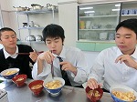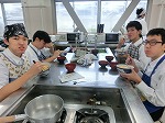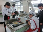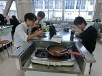 調理実習で親子丼と澄まし汁をつくっています。男子だけのクラスですが手早く