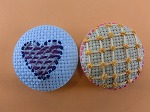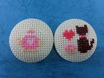 くるみボタンの自由課題です。ワンポイントや全体模様のものを作っています。