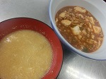 マーボードウフとスーミータン(中華風コーンスープ)をつくりました。