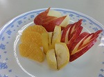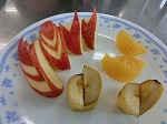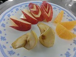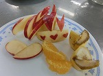 リンゴとバナナとはっさくの飾り切りに挑戦しました。