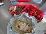 鮭のホイル焼きの実習です。今回は食材を持ち込んでアレンジしたり