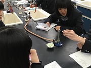 それぞれの溶液を綿棒につけ、炎の中にかざし考察します。