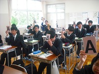 「結婚をしたいかどうか?」「何歳で結婚したいか?」を〇×△やA~Dの四択で答え、理由まで考えて、話し合いました。