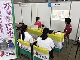 本校の3年生就職希望者が参加し、各ブースで真剣に説明を聞いていました。