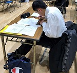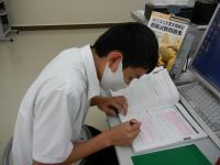 静かな教室に電卓をたたく音と鉛筆の音だけが聞こえるこの空間が部員全員の集中力を表しています。外は酷暑ですが国ビも熱いです。