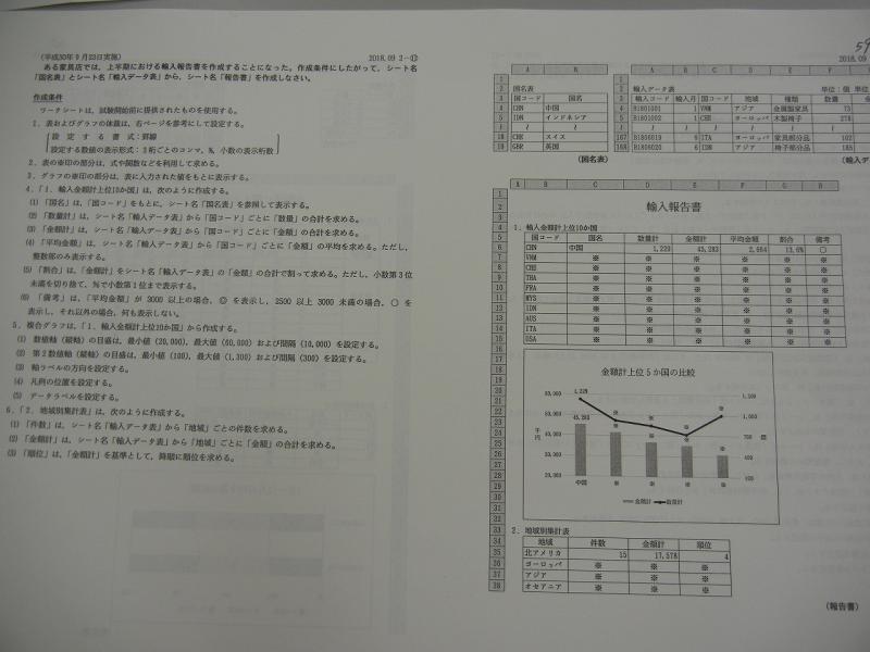 【実技】エクセルを用いて指示された表や複合グラフなどを制限時間内に作成させます。