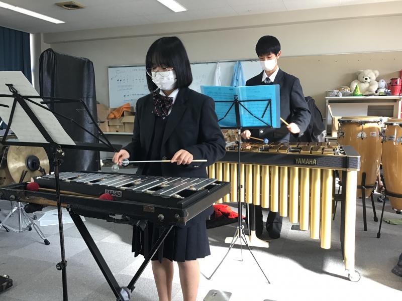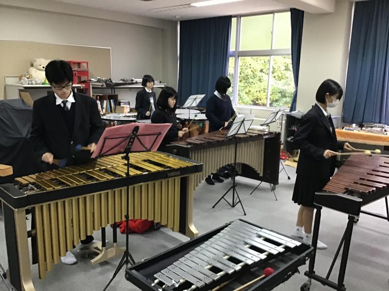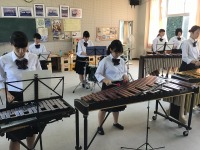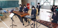 普段は管楽器を演奏している部員も含め、みんなで打楽器に挑戦です。