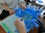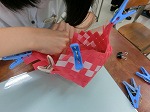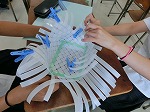 文化祭準備では、昨日に引き続きPPバンドで金魚とカゴを編みました。