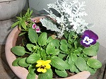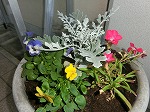 水引で花を作っていると校内外に飾られた寄せ植えを思い出します。