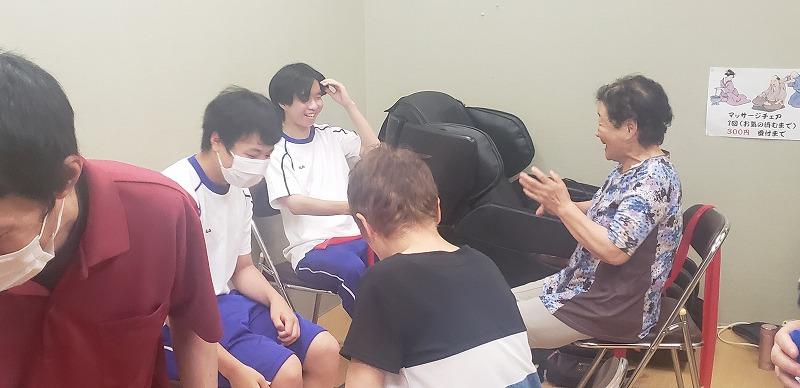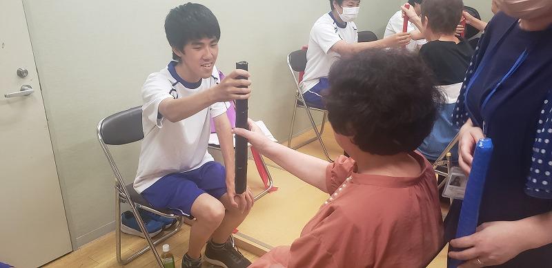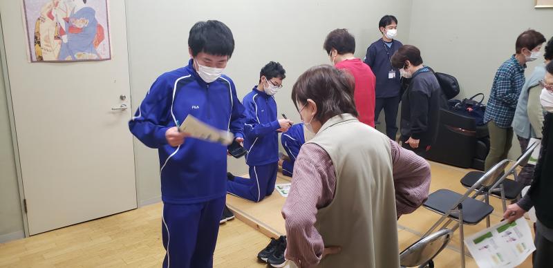 頭を使った体操や下肢筋力をメインと行う体操を中心に行われました。今回は高校生が参加者の皆さんの見本となる