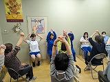 姿勢改善のための体操を地域の方々と一緒に行いながら楽しい時間を過ごさせていただきました。