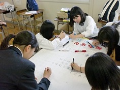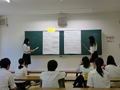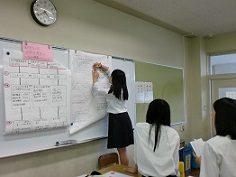 模造紙で内容と発表原稿をまとめ、練習をしてきました。