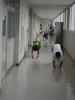 最後に雑巾リレーを行い、校舎が綺麗になる、選手は強くなるの一石二鳥なトレーニングを行いました。