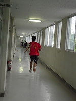台風の接近に伴いグラウンドが使用不可のため本日は校舎内でのトレーニングをしました。
