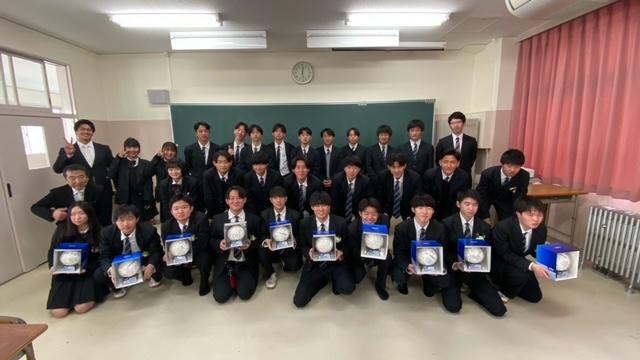 令和2年度のサッカー部3年生卒部式を行いました。この春卒業する3年生部員に、後輩から寄せ書きを書いたメッセージボールを贈呈しました。