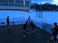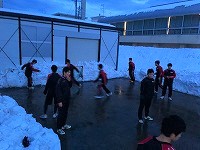 そこで部員たちで協力して雪をどかし、練習スペースを作りました。
