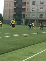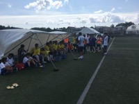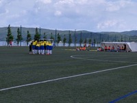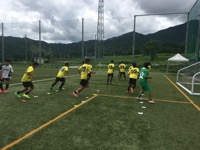 暑い中での初戦となり、試合を優位に進めるも、なかなか得点をすることができませんでしたが、後半に1点をとり、決勝へと進みました。
