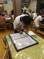 夜には試合をふりかえり、全員でディスカッションしました。