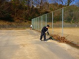 雨や雪でなかなか練習できなかった冬場でしたが、春が近づきコートを使用できるようになってきました。ただ、落ち葉がたくさんたまっている状態です・・・。