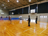 中央にあるのが、本校バドミントン部 部旗「臥薪嘗胆」 です。