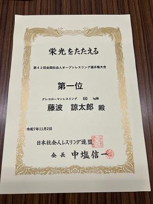 11月2日(日)に埼玉県で行われた「第42回全国社会人オープンレスリング選手権大会」において本校レスリング部顧問の藤波先生がグレコローマンレスリング60㎏級で優勝しました!