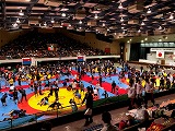180名の選手が集まった。 組み手争いの高畠。 参加者全員で記念写真。