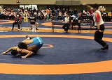 本校からは宮田選手が東海北信越ブロックを勝ち抜き本戦出場権を得ました。3月の全国選抜大会で右肩を負傷し、まだ完治しておらず途中棄権も考えましたが、本人の強い意志もあり参加しました。2回戦で東北ブロック代表と対戦し、フォール体勢に入ったものの、右腕の力が入りきらず勝利を逃してしまいましたが、試合内容は負傷をしながらも十分な良い内容でした。
