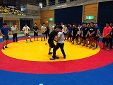 タックルの基本練習。 構え&組み手のアドバイスを受ける。