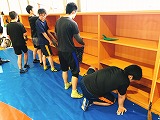 予行練習で動いてしまった椅子をきれいに整列したり、ジェットヒーターの灯油を補充したりなど、3年生や出席される方々が気持ちよく卒業式に参加できるよう、部員たちで声を掛け合いました。