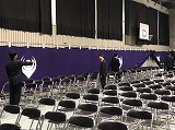 2019年3月1日 08時13分3/1(金)の卒業証書授与式に向けて、前日の練習後に式場となる体育館の最終準備を行いました。