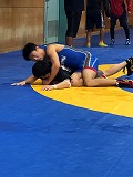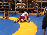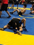 マット4面での練習。 強豪校の選手を攻める横井。
