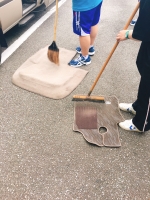 使用したバスはきれいに箒や雑巾を使い清掃。