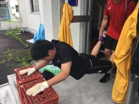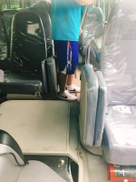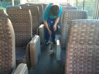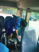 学校に到着後、速やかに使用したマイクロバスの清掃をしました。