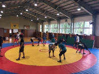 部員達は8月16日から行われる全国グレコ選手権に向け、グレコローマンスタイルの練習をし、大会に出場しない部員はフリースタイルを中心に大学生に胸を借り練習をしました。