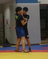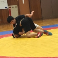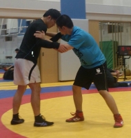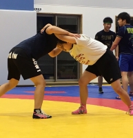 1階級上の選手と練習する正理 北京オリンピック銀メダリストの胸を借りる清水