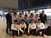 出国審査を終えた代表選手達。