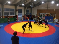 2月27日(土)に本校レスリング部、星稜レスリング部、鶴来ラグビー部、柔道部が本校武道場に集まり、レスリングの合同練習会を行いました。格技、球技と異なる競技ですが、トレーニング法や技術などを互いに学び合う良い機会となりました。