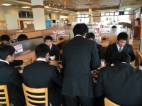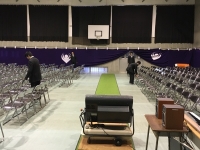 食事後は学校に戻り3年生が帰宅したところで、明日の卒業式を気持ちよく行えるよう1,2年の部員で会場の座席整頓などを行いました。