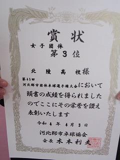 かほく市河北台健民体育館にて開催され、卓球部女子が参加しました。