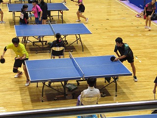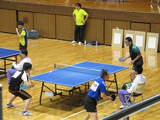 9月23日(日)に加賀市スポーツセンターにてペアマッチ卓球大会が開催されました。本校からは7名+顧問の計8名が参加しました。この大会は卓球好きの中学~年配の方まで幅広い年齢層の選手が参加しておりとても盛り上がっていました。この大会に出場し本校の生徒に感心したのは大会の設営に進んでお手伝いをしていたことです。素晴らしい!顧問もうれしく思いました。