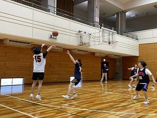 円陣を組んで気合を入れます! 積極果敢に3ポイントシュート!