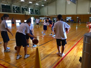 新チームでは、レイアップシュートを重点的に練習しています。3年生も若干名、残っています。夏の大会に向けて、がんばります。