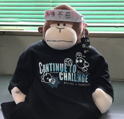 マスコットのゴリちゃんも「不撓不屈」のハチマキで応援します。