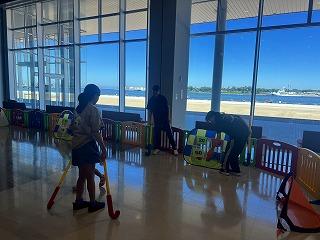 大きな窓から金沢港が一面に見えるクルーズターミナル内1階のスペースにブースを作らせていただきました。