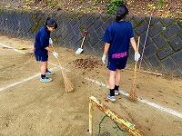 いつも練習で使用しているグラウンドの落ち葉掃除、草むしりを行いました。