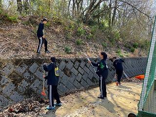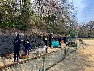 それから、ネットの修理や、草むしりなども部員全員で協力して行いました。