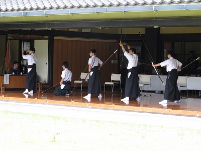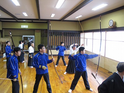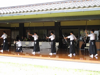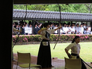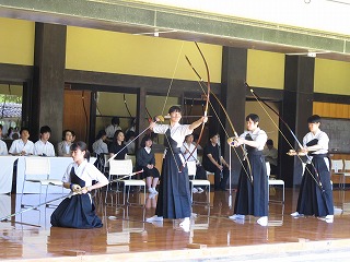 1年生の中村君が競射会で優勝し、納射を行いました。