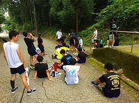 パスやゲーム形式の練習で高校生部員と汗だくになっていました。